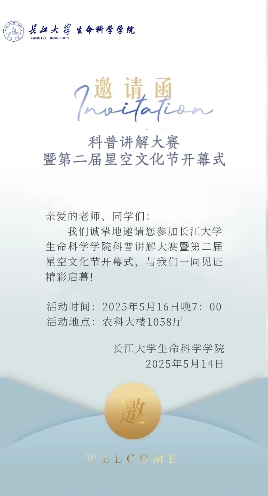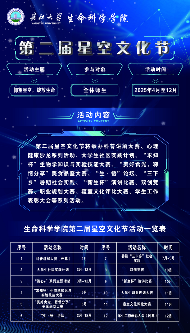 关于举办长江大学生命科学学院科普讲解大赛暨第二届星空文化节开幕式的通知