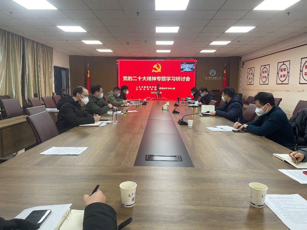 人文学院院长何世龙、副院长李征宇,我院副院长杜何为、孙卫青结合工作实际分别交流了学习党的二十大精神的体会。我院党委书记蔡哲斌对学习作总结发言表示,党委中心组成员要深入学习贯彻党的二十大精神,一是要进一步提高认识,以上率下;二是要坚持学用结合,知行合一;三是要提高政治站位,推动二十大精神落实落地。