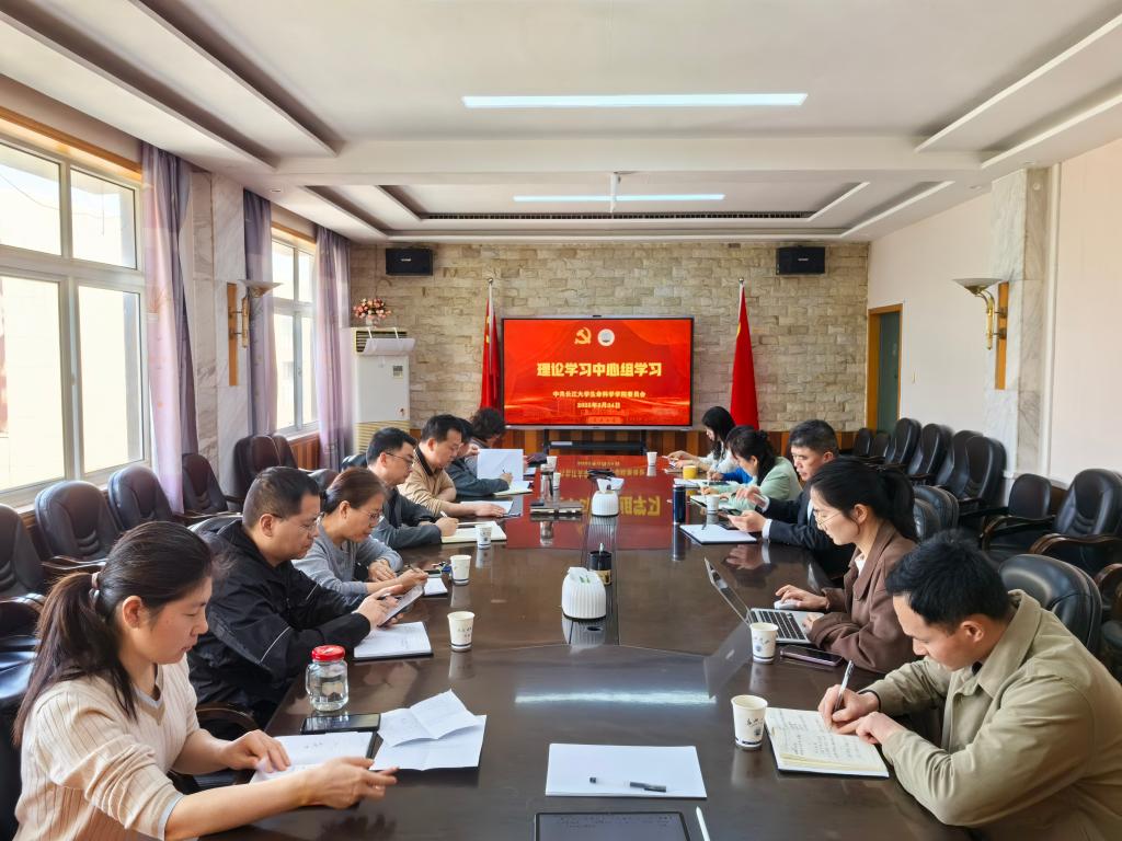 (通讯员 朱翠玲)3月24日上午,我院党委理论学习中心组在西校区行政楼323会议室开展三月份政治理论集中学习。中心组成员、各系(中心)主任、党支部书记和科级干部参加。