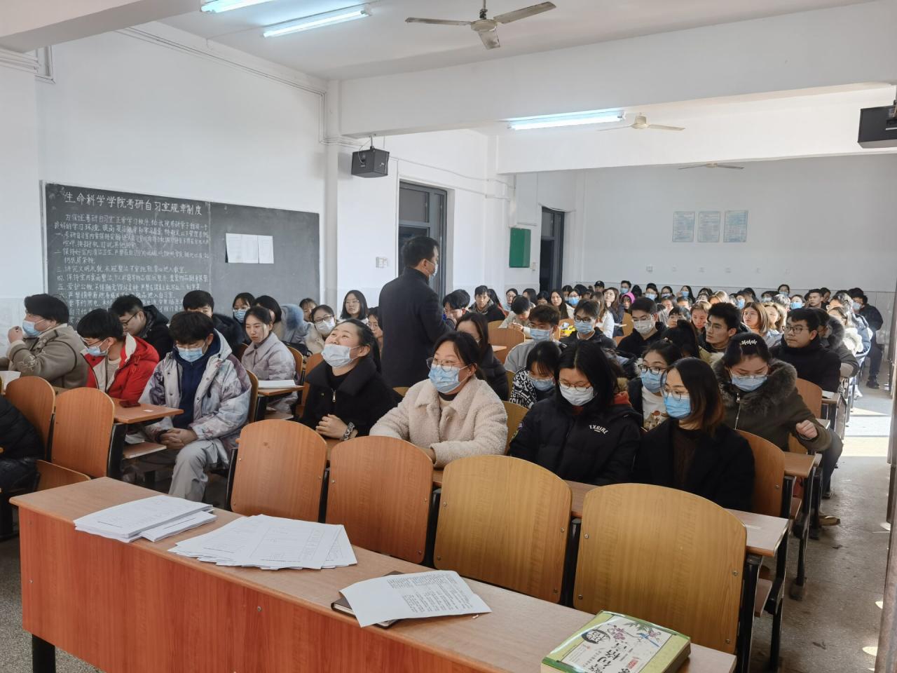 谢书记就学校的寒假安排进行了详细说明。同时提醒各位研究生,目前疫情防控形势较为严峻,暂无科研任务的研究生,经导师同意后,建议提前离校,能回尽回,没有特殊原因不得随意滞留和提前返校。并强调研究生留校期间日常管理相关内容。随后,顾志翔老师分发《长江大学2021年寒假研究生延迟离校申请表》、《生命科学学院2021年寒假延迟离校研究生家长知情同意书》与《生命科学学院2021年寒假研究生导师监管假期留校研究生责任书》相关文件,并告知只有上交这三份文件,经学院党政联席会审批后方可延期离校。