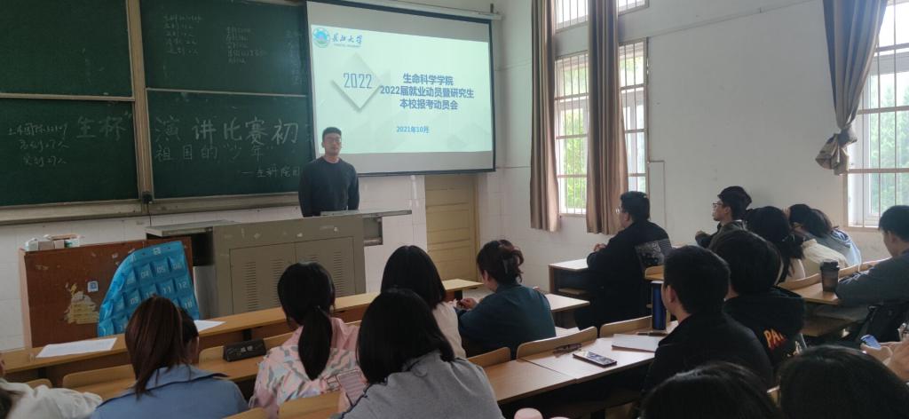 为扎实推进2022届毕业生就业指导工作,学院于2021年10月13日,在西校区二教t2召开2022届就业动员暨研究生报考本校动员会,本次动员会由就业专干郭凯老师主持,2022届全体毕业生到场参会。