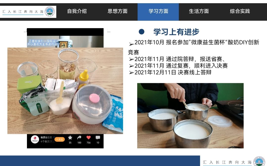 (通讯员 唐彬 梁瑞/文)为贯彻落实国民营养计划,鼓励大学生积极创新和开发营养、健康、美味的新食品。12月11日,湖北省食品科学技术学会在恩施举办了第四届“微康益生菌杯“酸奶DIY总决赛。经过与其他20所高校的激烈比拼,长江大学生命科学学院“千莲茶香”团队荣获三等奖,从142个作品中取得第九名的好成绩。