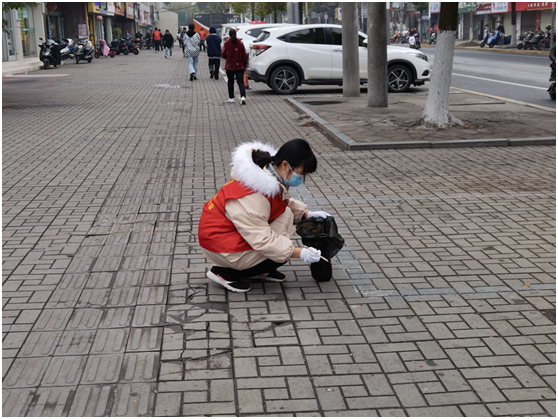 上午7时,志愿者们在长江大学校门口集合,各自领取了马甲和手套、筷子、垃圾袋等清洁工具。划分组别和区域后,志愿者们来到了各自负责的区域,热情满满地展开了志愿服务工作。志愿者们开始清理街道,认真清扫草坪中和道路上的烟头、瓶盖、纸片和烧烤竹签等垃圾;下过雨后湿润的地面使得部分垃圾不易拾起,志愿者们果断放弃工具,用手去捡起垃圾;当看到自行车东倒西歪时,他们毫不犹豫上前将其罗列整齐,热心市民也会在一旁帮助志愿者并对志愿者们的工作表示肯定和鼓励。志愿者们在看到车主违章停车后,会及时地追上前去,文明礼貌地对车主违章停车的行为进行劝阻,车主也十分配合,知悉后便驾车离开。每一位志愿者在岗时都十分敬业,他们用自己的努力让街道变得更加干净整洁,让城市秩序变得更加有序。