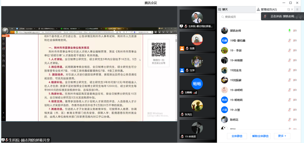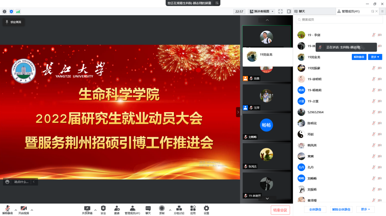 (通讯员 顾志翔 段奥)为贯彻落实长江大学服务荆州招硕引博工作推进会相关精神,进一步优化今日吃瓜大赛热门爆料2022届研究生的就业服务及管理工作,促进高质量就业氛围的形成。我院于2022年2月24日下午顺利召开2022届研究生就业动员暨服务荆州招硕引博工作推进会议。根据疫情防控政策要求,本次会议采用腾讯会议方式线上召开。会议由党委副书记汪萍主持,研究生辅导员顾志翔,就业专干郭凯进行宣讲,全体2019级研究生参加。