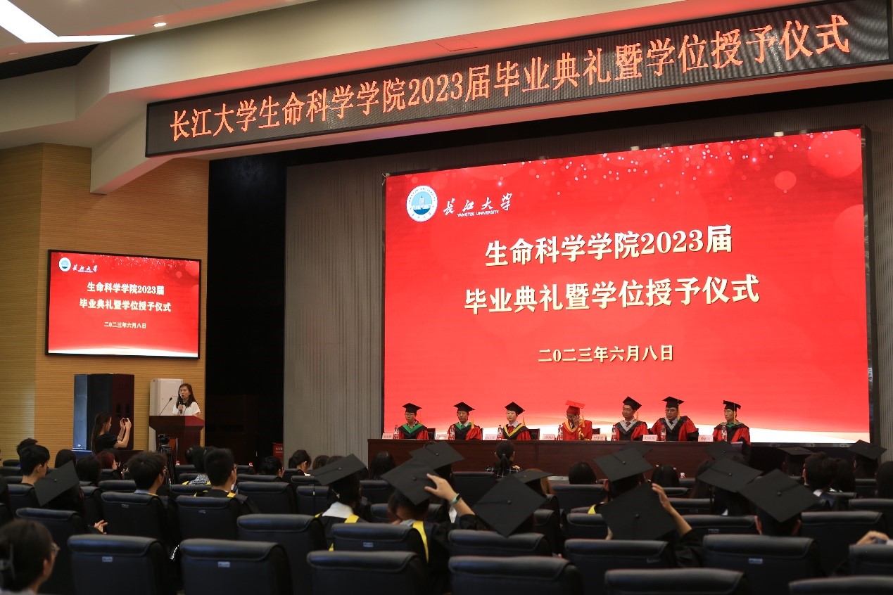 (通讯员:郭凯)凤凰花又开,青春不散场,2023年6月8日上午,长江大学生命科学2023届毕业典礼暨学位授予仪式在农科楼1058报告厅隆重举行。学院院长高梦祥、副院长孙卫青、副院长杜何为、教授代表田志宏、吴庆华、孙文秀、李真顺,系主任江洪波、陈卉,班主任代表魏淑东、陈颖、陈爱霞,辅导员范昆琨、郭凯及2023届全体毕业生出席了典礼,典礼由学院党委副书记汪萍主持。