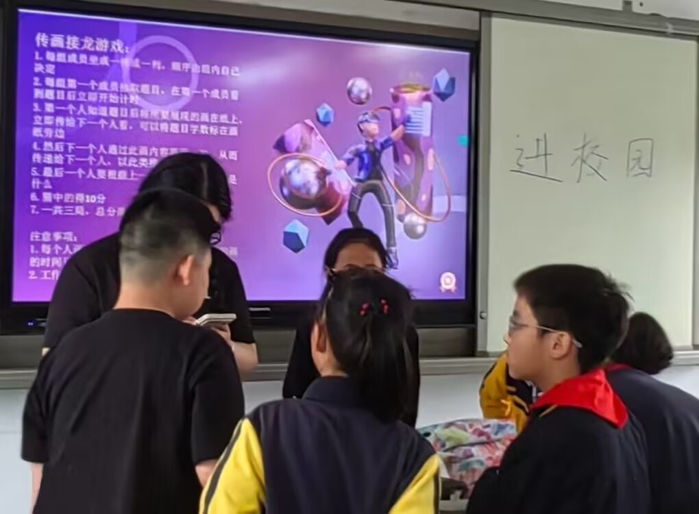 本次活动主要以志愿者借助ppt宣讲以及组织游戏的方式展开。活动过程中,一张张美食图片很快吸引了小朋友们的注意力,志愿者们便趁机提醒小朋友们有些美食外表光鲜艳丽,其内在蕴含有害物质,需要减少摄入量。与此同时,志愿者们积极的与小朋友们进行互动,时不时地询问他们爱吃的零食和蔬菜等等。为加强小朋友们对食品安全知识的记忆,志愿者们还准备了部分问答题目,小朋友们争先恐后地举手回答问题,整个课堂充满着活力。除了问答互动,在游戏互动中,小朋友们也和志愿者们相处的十分融洽。志愿者们陪伴着小朋友完成了“你画我猜”的小游戏。游戏过程中孩子们“大显身手”,绽放属于他们的活泼。下课之前,志愿者为小朋友们分发礼物。活动结束后,志愿者和师生一起在学校门口合影留念。