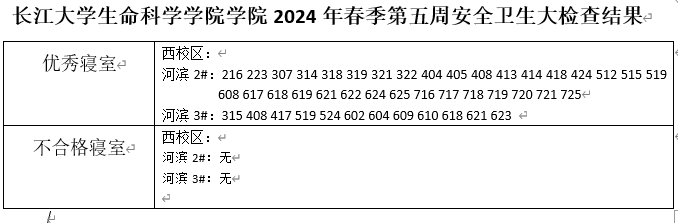 长江大学生命科学学院2024年春季第五周安全卫生大检查结果
