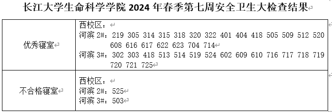 长江大学生命科学学院2024年春季第七周安全卫生大检查结果