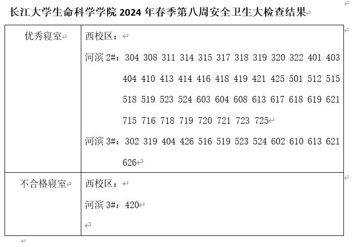长江大学生命科学学院2024年春季第八周安全卫生大检查结果