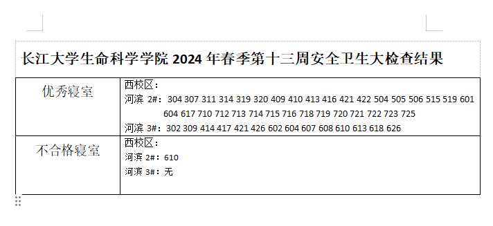 长江大学生命科学学院2024年春季第十三周安全卫生大检查结果
