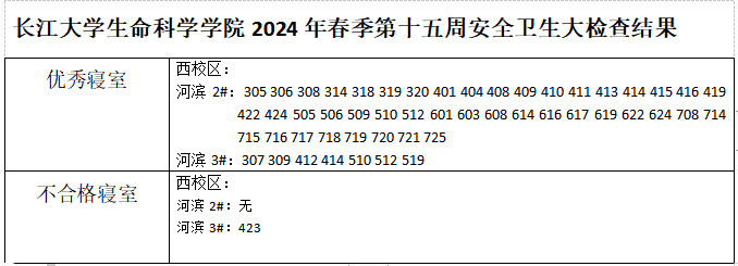 长江大学生命科学学院2024年春季第十五周安全卫生大检查结果