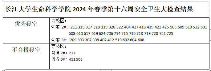 长江大学生命科学学院2024年春季第十六周安全卫生大检查结果