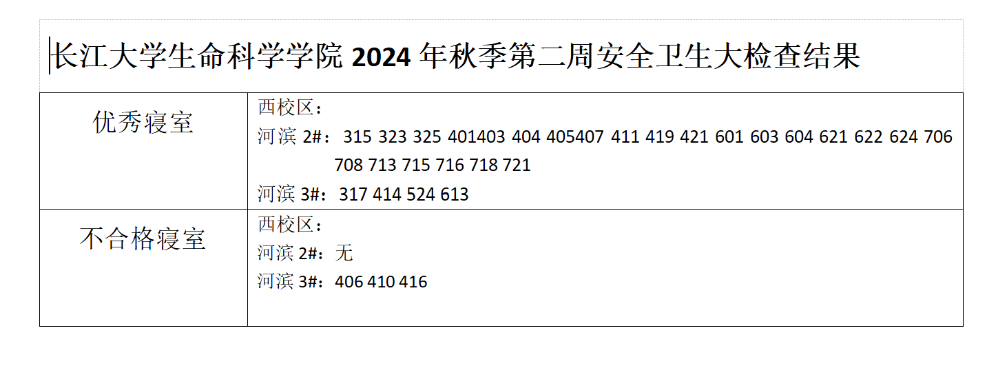 长江大学生命科学学院2024年秋季学期第二周安全卫生大检查结果