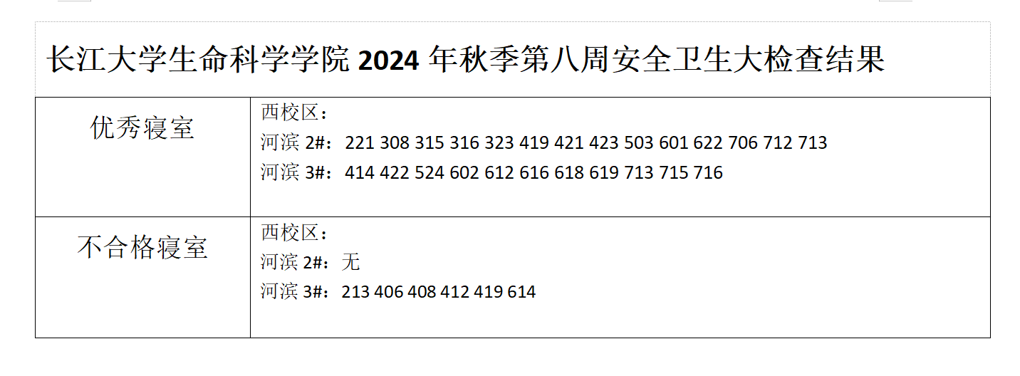 长江大学生命科学学院2024年秋季第八周安全卫生大检查结果