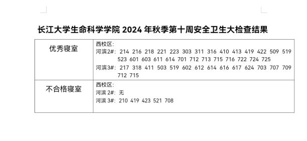 长江大学生命科学学院2024年秋季第十周安全卫生大检查结果
