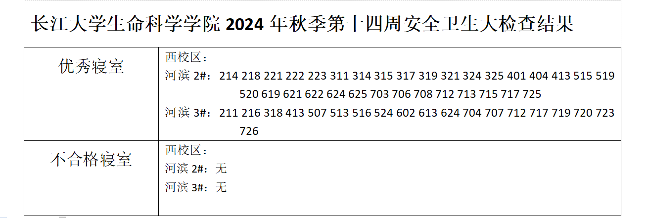 长江大学生命科学学院2024年秋季第十四周安全卫生大检查结果