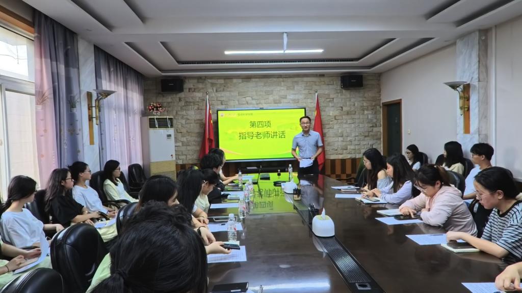 最后,团委书记李敏老师作动员讲话。他指出,“三下乡”社会实践是青年学生接触社会、了解国情的重要渠道,勉励同学们将专业知识与乡村实际相结合,在实践中增长本领。他引用“实践是检验真理的唯一标准”,强调实践对个人成长与专业学习的重要性,要求成员们带着明确目标深入实践,认真记录见闻与思考,形成有价值的成果。李敏再次强调了安全问题,叮嘱成员们团结协作、互相关照,以饱满热情和严谨态度完成实践任务,力争交出一份有温度、有深度的实践答卷。