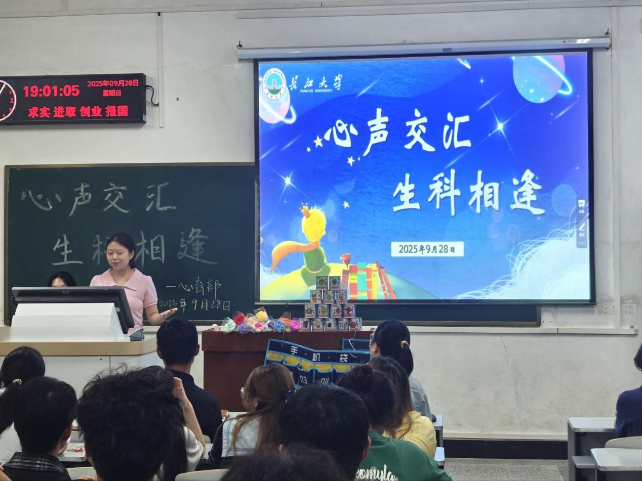 (通讯员 朱翠玲)心声交汇,生科相逢。为助力2025级新生尽快适应大学生活,融入集体,9月28日晚,生命科学学院于6教107教室成功举办“新生·心声”谈心沙龙。学院学工办主任朱翠玲老师、25级辅导员李敏老师、新生助理班主任及48名新生共同参与了本次活动。