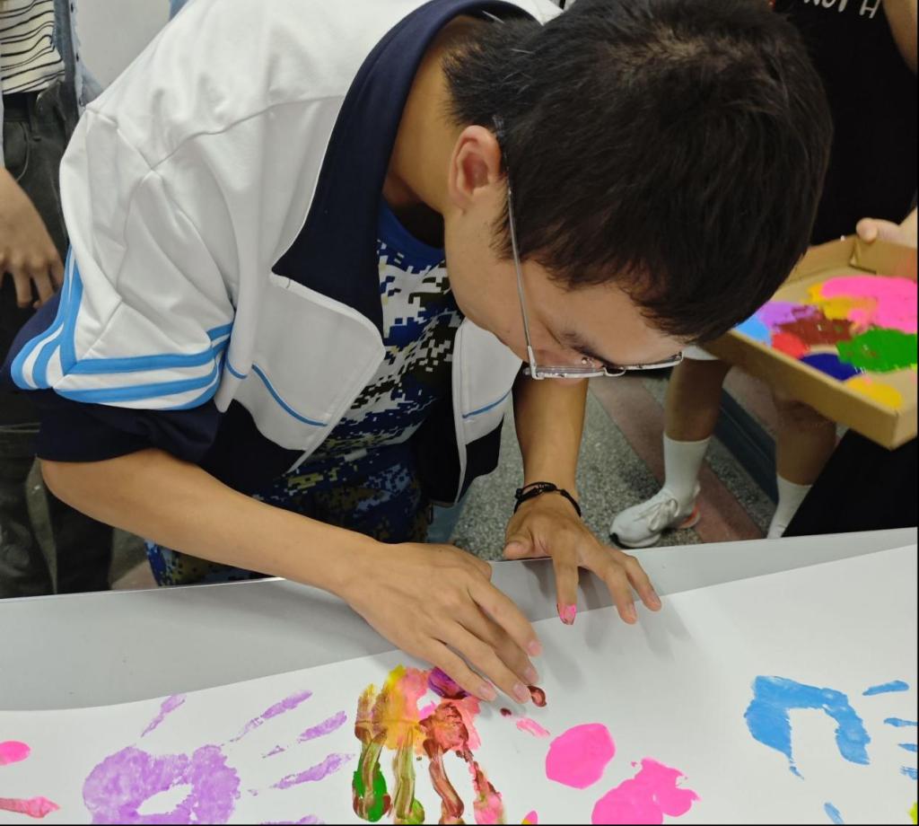 活动尾声,全体参与者在纪念布上按下了五颜六色的手掌印。形态各异的手掌印汇聚成一幅生动的集体画卷,既象征着2025级生科新生的初次相逢与集体归属感,也寓意着他们将携手并肩,在未来的求学路上共同成长。