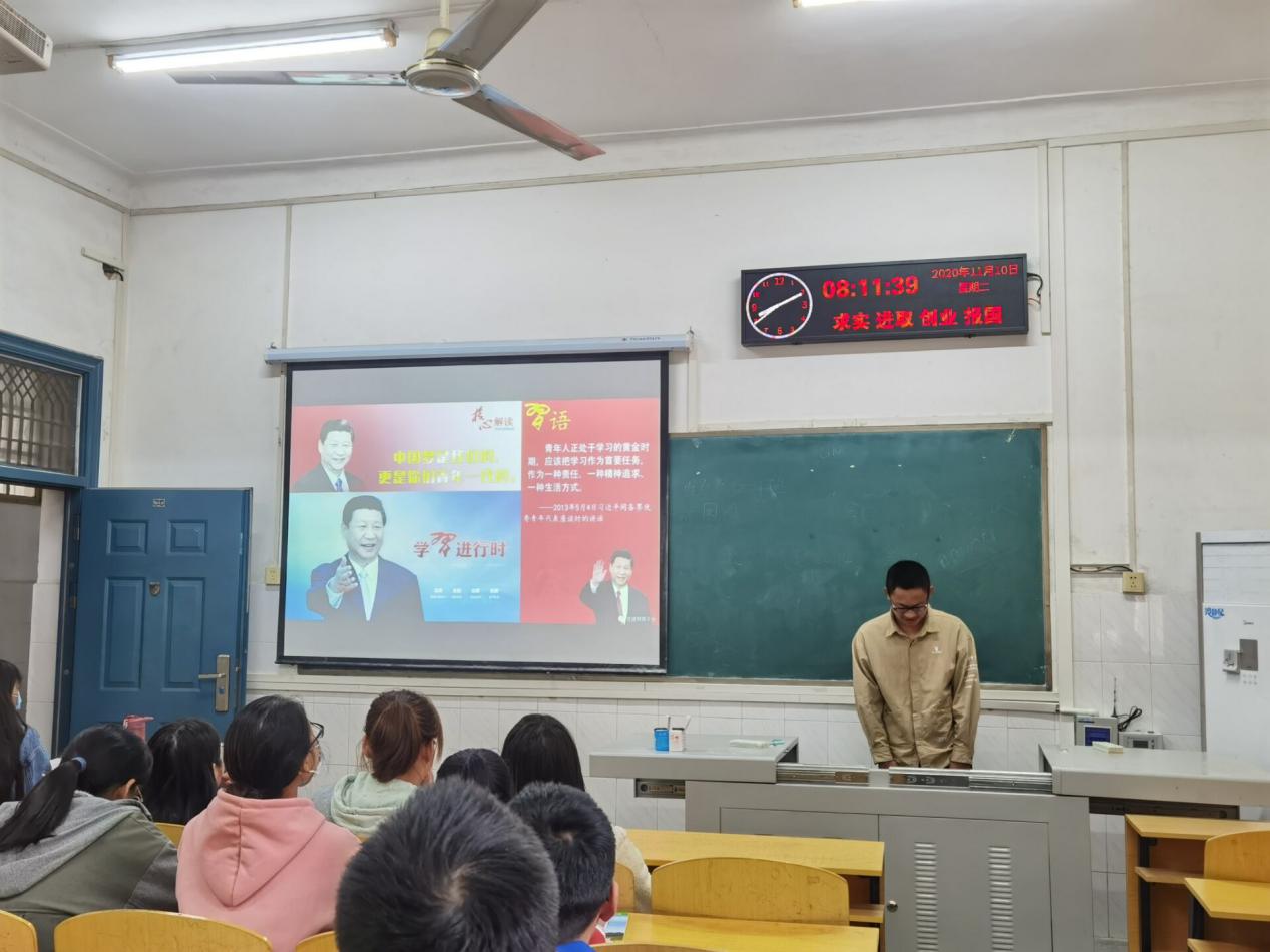 (通讯员 郭怡婷)为提升支部活力,引导支部学习新思想、把握新动态,展现我校学子奋发有为的精神面貌,不忘初心,牢记使命。组织学习习近平致西藏民族大学建校60周年的贺信精神;学习习近平寄语南开学子:志存高远,脚踏实地,学习习近平勉励西安交大师生:继续发扬西迁精神;学习习近平致哈尔滨工业大学建校100周年的贺信精神;学习习近平给中国戏曲学院师生的回信精神。生命科学32001班全体同学于2020年11月10日9:50,在6教105召开“学习新思想 建功新时代”主题团会。