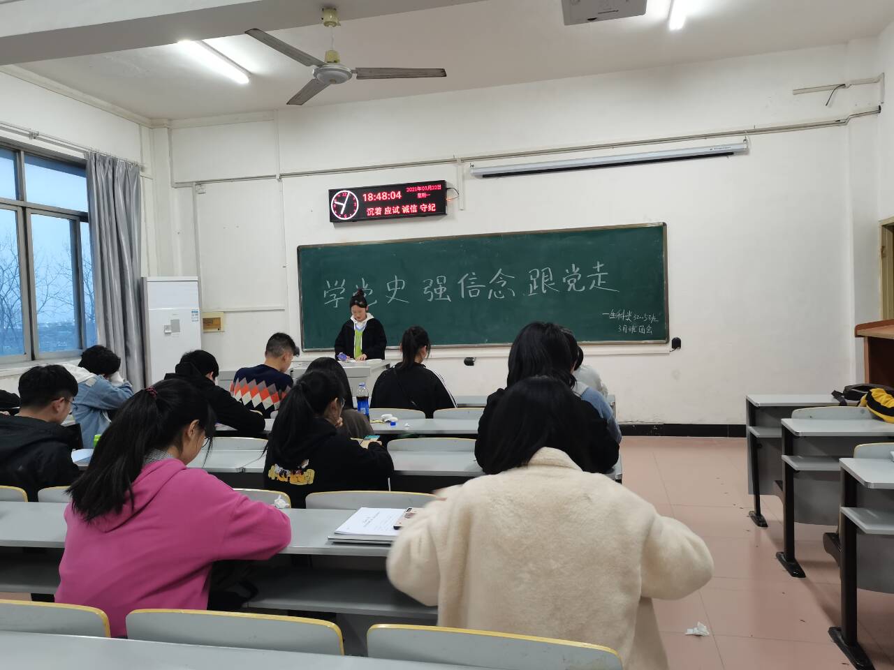(通讯员:朱芳)32118时,为提升支部活力,引导支部学习新思想、把握新动态,展现我校学子奋发有为的精神面貌,不忘初心,牢记使命。学习习近平总书记回信和贺信精神,明确当代大学生使命担当。切实提升团员青年的政治思想素质,增强基层团组织的凝聚力与战斗力。教育引导广大团员青年了解党的光辉历史、 感悟党的初心使命、 领会党的创新理论、 体认党的精神谱系、 传承党的红色基因, 更加自觉地以习近平新时代中国特色社会主义思想武装头脑,为党和国家培养社会主义建设者和接班人。生科32005班团支部组织学习习近平总书记在党史学习教育动员大会上的讲话,以优异成绩迎接建党一百周年以及习近平总书记在全国脱贫攻坚总结表彰大会上的讲话。积极向党组织靠拢,明确我们青年人肩上的责任,增强同学们的爱国之情,为中华民族的伟大复兴贡献自己的一份力,于5601开展学党史、 强信念、 跟党走主题团会。首先朱芳引导大家进入团会主题,宣布团会开始。主持人用风趣的语言报幕,同学们情绪高涨。团会开始,主持人介绍主题内涵和团会相关流程,接着学习了习近平总书记在党史学习教育动员大会上的讲话和习近平总书记在全国脱贫攻坚总结表彰大会上的讲话,同学们表示将不辜负习近平总书记的期望,沿着党指引的方向健康成长。主持人引导大家对这次讨论后的感受进行整理提炼,并让同学们自由发言,进行学习所得的分享和讨论。最后主持人进行团会总结,团会在积极向上的氛围中结束。