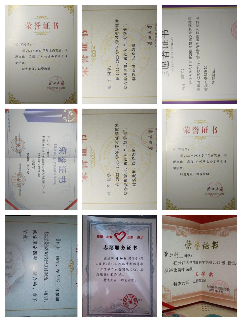 在学习创新方面。该支部不仅在思想上积极跟随党的脚步,行动上也毫不懈怠,支部成员们不忘初心跟党走,积极参加学校开展的各项活动,丰富了课余生活,提高了综合素质,增强了团队精神和集体凝聚力,展现了当代大学生积极向上的风貌。支部同学勤奋好学,努力刻苦,本支部2023年下半年平均绩点3.29,四级通过率82%。支部成员积极参与创新创业竞赛。在2023年长江大学大学生创新创业训练计划项目中,罗堰木等同学的《玉米ZmPVC1 基因提高水稻产量的探究与剖析》、赵莞情等同学的《玉米emb70突变体的基因克隆和功能研究》2个创新训练项目成功立项。该支部坚持全面发展,积极鼓励支部成员参加第二课堂活动。在第十届晨曦杯辩论赛中,王蓉同学获得“ 优秀辩手”称号;王蓉、汤彦2名同学参加“九章杯”辩论赛,其中王蓉获得“优秀辩手”荣誉称号;积极参与各种学生活动,如DIY酸奶大赛,全员向前冲,信有灵犀,长江大学“定向越野”活动;杨秀月等3名同学在新生杯演讲比赛中获得优异成绩;郭超同学获得院级方言配音大赛“一等奖”。同时,该支部在学科竞赛上也成果突出。5人参加第十二届“导航杯”思政课实践教育活动之“我的劳动教育课”比赛,其中4人获得“优秀奖,1人获得”三等奖“;1人在外研社英语演讲比赛中获得“三等奖”;1人在“普译奖”全国大学生英语写作大赛中获得“三等奖”;1人获得“学习二十大,青春心向党”作品征集比赛二等奖;1人获得第三届“外教社·词达人杯”全国大学生英语词汇能力大赛湖北赛区本科非英语专业组“二等奖”。