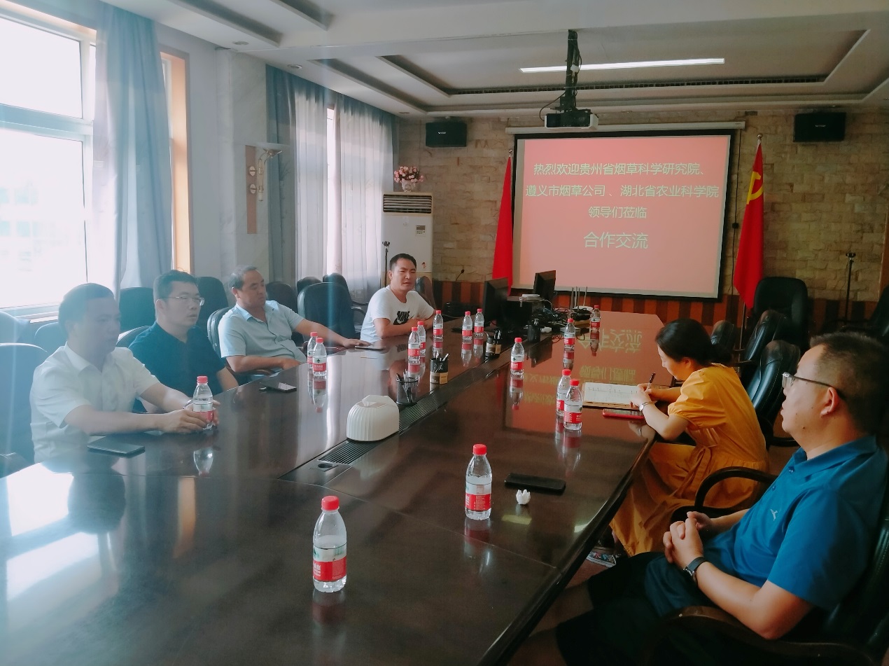(通讯员 陈爱霞)2022年6月30日下午,贵州省烟草科学研究院、遵义市烟草公司、湖北省农业科学院等3家单位相约来我院进行合作交流座谈,座谈会由学院副院长孙卫青主持。