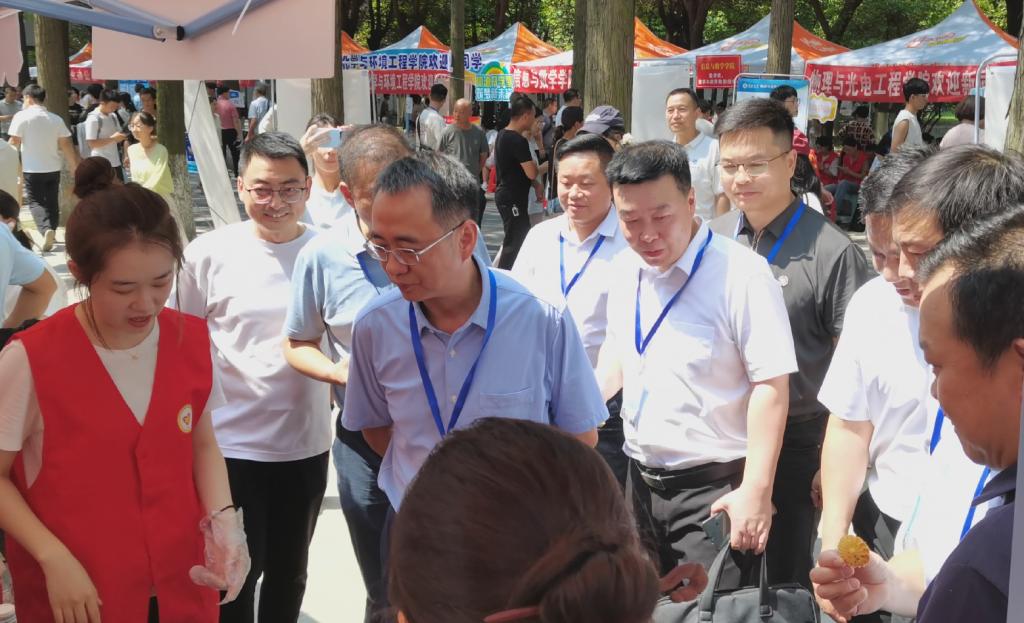 迎新如火如荼进行的同时,学校领导和学院领导也莅临迎新点指导工作,询问新生报到情况,关心慰问志愿者。“辛苦了,记得多喝水”,校党委书记王建平的问候如同甘霖般滋润了志愿者们的心田,让这份原本就充满热忱的服务工作更加充满了力量与温情。