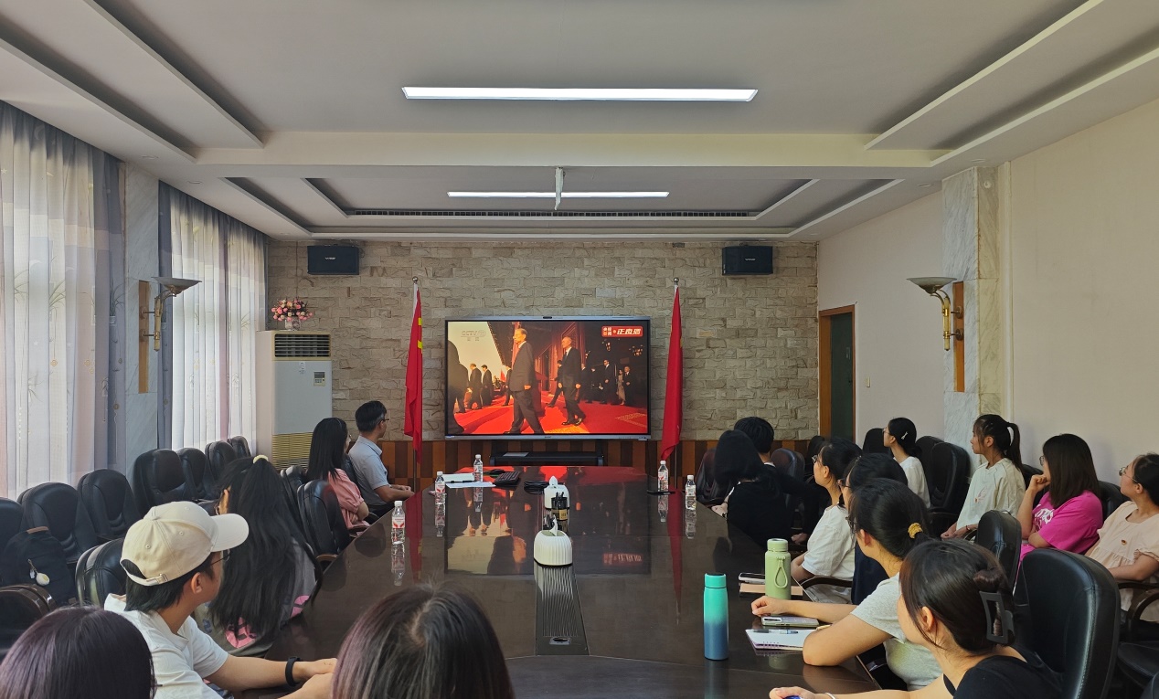 在庄严热烈的观看现场,师生党员全神贯注,跟随直播镜头感受阅兵现场的震撼场面。当国歌奏响、国旗升起时,全体与会人员自发起立行注目礼。长安街上铁甲列阵、战鹰呼啸,新型国产装备的亮相展现了中国军队的现代化风采和强大实力,令人心潮澎湃。习近平总书记检阅部队时,受阅官兵高呼“听党指挥!能打胜仗!作风优良!”“正义必胜!和平必胜!人民必胜!”,铿锵誓言道出了中国人民的心声,也承载着世界人民的共同愿望。