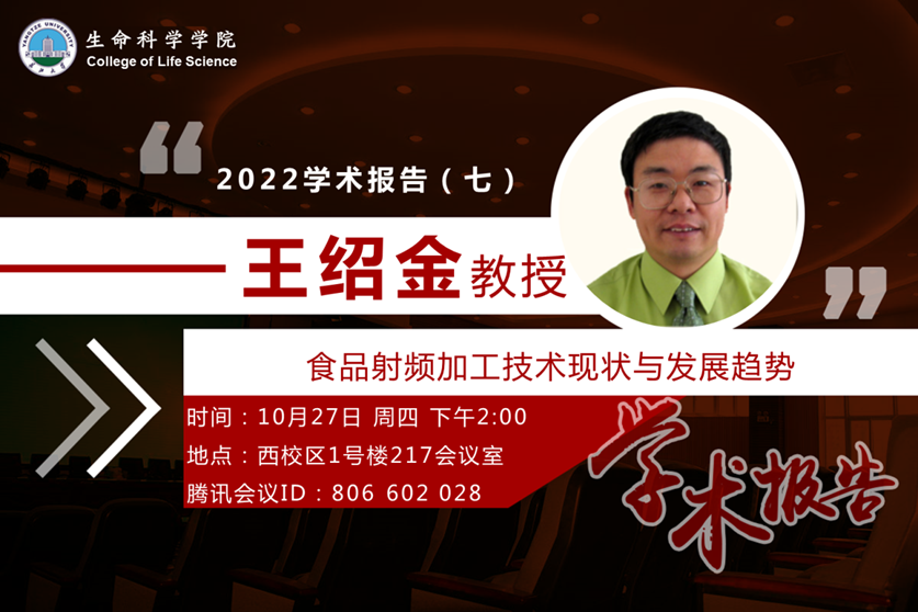 报告人简介:王绍金,西北农林科技大学机械与电子工程学院二级教授,博士生导师,美国华盛顿州立大学兼职教授、陕西省创新人才长期项目特聘教授。主要从事农产品加工工程方向的科研工作,在微生物与害虫的热致死机理、农产品介电特性、射频灭菌杀虫干燥技术与产业化等方向有较深入的研究。担任《Transactions of the ASABE》等7个SCI杂志栏目主编、副编与编委和J. Food Eng.等近20个SCI期刊审稿人。曾担任美国农业部、中国、瑞士与挪威国家自然科学基金项目评审专家,国际学术会议多个分会场主席,20多次国际会议上做射频加热方面的特邀报告。作为课题主持人已先后获批了4项美国农业部研究项目,并先后在国内主持了教育部博导类博士点基金、陕西省科技攻关(2项)、国家自然科学基金面上项目(2项)、农业部948项目与科技部十三五重点研发项目子课题(2项),授权国际发明专利2件与国内发明专利3件,荣获中国轻工业联合会与新疆维吾尔自治区科技进步一等奖各一项。现已发表SCI论文262篇,共被引10769次,h指数为60。连续八年(2014-2021)被Elsevier评为农业与生物领域中国高引学者,2021年入选Clarivate全球“高被引科学家”榜单。培养的研究生荣获陕西省优秀博士学位论文1人,获校优秀博士学位论文6人,校优秀硕士学位论文4人,AOC研究生学术成就奖5人。