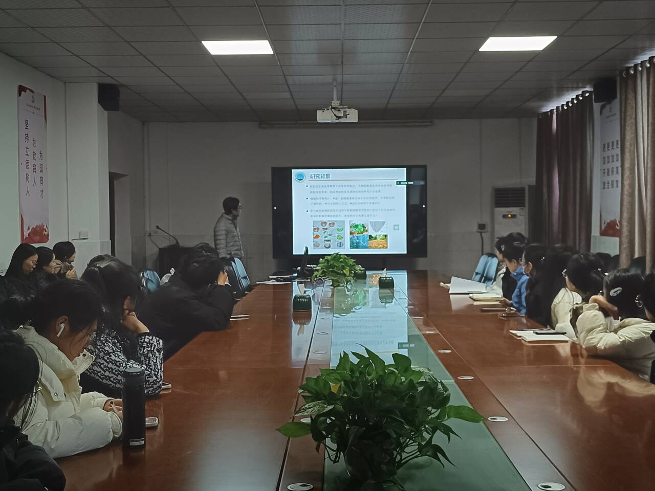 (通讯员杨笑彦)12月19日下午,生命科学学院在西校区1-217举办求实导师学术沙龙。此次活动由王珍博士主持。罗岸老师作题为烟草胚胎发生过程中胚柄细胞程序性死亡的分子机理研究的报告;硕士生导师李利做题为前体导向的半合成技术高效制备特定红曲色素组分研究的报告;共70余名师生参加。