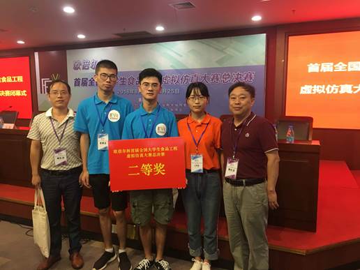 我们在准备比赛的过程中分工合理,团结协作,大家都为了共同的目标而努力。从暑假我们确定代表学校参加全国首届食品工程虚拟仿真大赛开始,大家便都攒着一股劲,共同奋斗。也正是因为我们的不断进取和老师的帮助,我们在福建农林大学参加初赛时获得了南部赛区团体一等奖,在江南大学参加决赛获得了团体二等奖。最终当我们手捧着奖牌的时候,我们真切体会到“付出总有回报”的强烈幸福感。为了比赛,当同学们在家里度假时,我们在学校跟老师一起探讨题目。由于初赛准备时间很紧迫,我们便把晚上休息的时间都拿出来做仿真实验练习;到了决赛,虽然有经近一个月的充足时间用来准备,但因为涉及化工实验,我们经常于东西区之间来回奔波,不做实验的其他时间里,我们每天都待在行政楼323复习竞赛内容。功夫不负有心人,我们的付出以及充足的准备也在最终收获了回报。