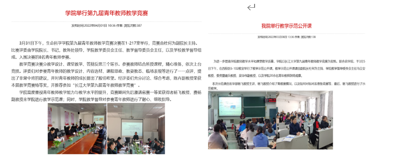 在实践活动深入推进中多方举措提升青年教师教学能力。一是学院自行编制典型教学管理案例材料,在青年教师参加完学校的入职培训后,学院组织专门的教学管理规范培训指导,用典型案例材料阐释教学规范要点,让青年教师在教学规范上树意识明做法。二是组织青年教师讲课比赛,开展教学大比武,学院教学督导委员对每个青年教师的授课进行讲评,并予以针对性指导,使青年教师在反复磨练中获得教学进步。三是组织教学示范课,开展观摩学习,以长江大学第九届青年教师教学竞赛为契机,先后邀请杨飞教授、费扬副教授来学院进行示范教学;专家示范课与青年教师试讲课同台,让青年教师在对比中找差距、在指导中取真经。四是学院对专家教学示范课,以及青年教师试讲课、比赛课等课堂教学活动进行全程录像,作为学习资料,以鲜活的事实让青年教师获得感悟和体验,发现自身问题与不足,以便针对性地的积极改进。